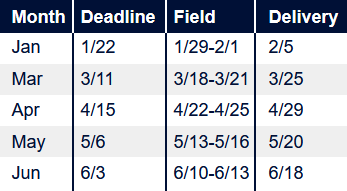 The sample size for each survey is approximately 1,200 completes. Adults 18 years of age and older residing in the United States are contacted through a multi-mode design: By phone using live interviewers, by text, or online. The sampling frames include RDD plus listed landline, RDD cell phone sample plus cell phone sample based on billing address to account for inward and outward mobility, and aggregated online research panels. Survey questions were available in English or Spanish. Phone and online samples are selected to ensure that each region is represented in proportion to its adult population. The samples are then combined and balanced to reflect the 2020 American Community Survey 5-year estimates for age, gender, income, race, and region.