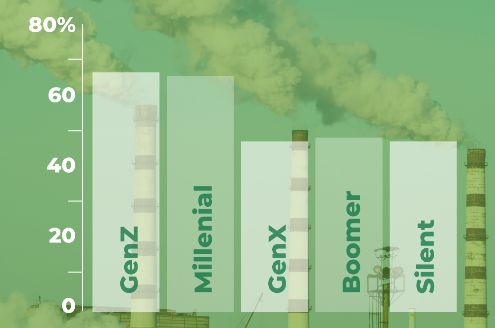 Adult members of Gen Z (18-29) are more concerned about climate change than any other generation.